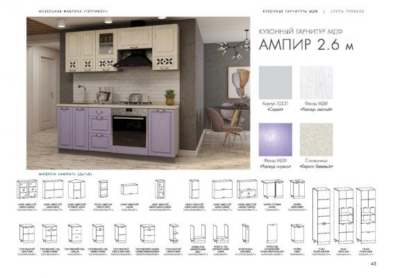 Кухня Ампир изговаливается также в цветах серый/роялвуд сирень; серый/роялвуд светлый; серый/роялвуд голубой. Модули в этих цветовых решениях вы сможете найти в нашем интернет-магазине.