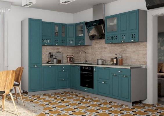 Модульный кухонный гарнитур Ампир роялвуд бирюза (Террикон)