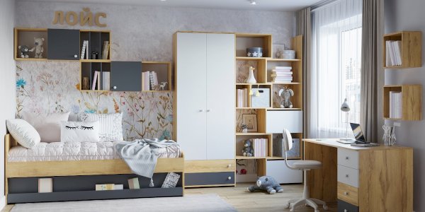 Навесной шкафчик с открытыми и закрытыми нишами, полками - удобный способ настенного хранения самых разных вещей. Универсальный модуль ЛОЙС 88 можно навесить на уголки как горизонтально, так и вертикально. В вертикальном положении рекомендуем использовать шкаф как функциональную надстройку для тетрадей и учебников.