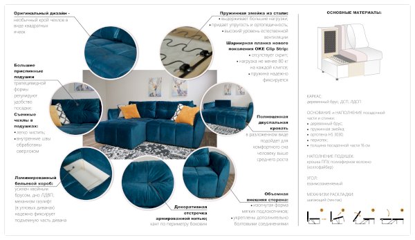 Современный диван с эксклюзивным дизайном, комфортом и функциональностью. Плавный, округлый силуэт, подлокотники с декоративным кантом, мягкое стеганое сиденье с глубокой посадкой и обивка создают необыкновенный уют и роскошную обстановку. Две большие подушки регулируют удобство посадки, после сидения быстро восстанавливают первоначальную форму. Диван оснащен надежным и легким в раскладке механизмом тик-так для каждодневного использования. Размер спального места соответствует полноценной кровати, большой бельевой короб для хранения вещей – приятное дополнение к нему.