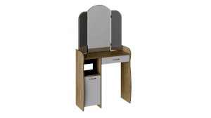 Помимо внешней привлекательности стол оснащен большим зеркалом с поворотными зеркальными створками, вместительную столешницу под которой располагается выдвижной ящик, открытая ниша для хранения и секция с дверцей, где можно разместить все необходимые аксессуары и косметику. Удобные отсеки помогут поддерживать порядок и удобство в Вашем уголке красоты.