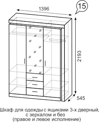 Наполнение: полки + 2 штанги + 3 выдвижных ящика