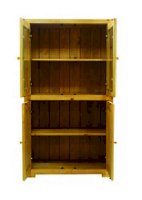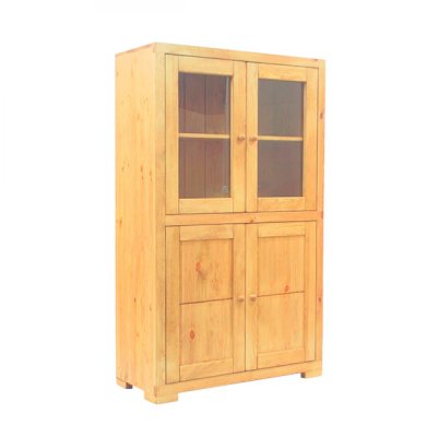 Функциональность витрине обеспечена с помощью закрытого отделения с глухими распашными дверьми. Туда вы можете сложить книги, документы и белье. Прекрасная отделка и надежная фурнитура обеспечат этой витрине из массива сосны долговечность при самой интенсивной эксплуатации.