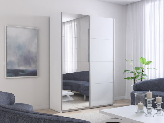 Шкаф-купе 2-х дверный Прайм Зеркало/Белое стекло 1200х2300х570 мм