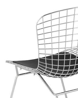 Оригинальная и современная модель стула Bertoia прекрасно впишется в любой интерьер дома или ресторана. Спинка и сидение выполнены из металлических прутьев с гальваническим покрытием в виде сетки, образуя единое целое. Подушка изготовлена из экокожи. Ножки выполнены из металла и имеют подставки, которые обеспечивают качественное "сцепление" с полом. Такая конструкция стула способна подарить ощущение легкости.