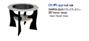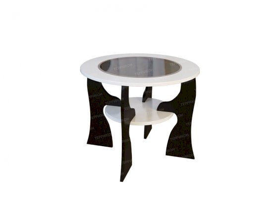 Небольшой журнальный столик №6 — это стильный и броский предмет обстановки. Необычным и запоминающимся его делают ножки необычной конфигурации и привлекающее внимание сочетание двух контрастных цветов: ослепительного белого глянца и темно-коричневого венге. Благодаря круглой форме он занимает минимум места и может использоваться даже в весьма тесных помещениях.